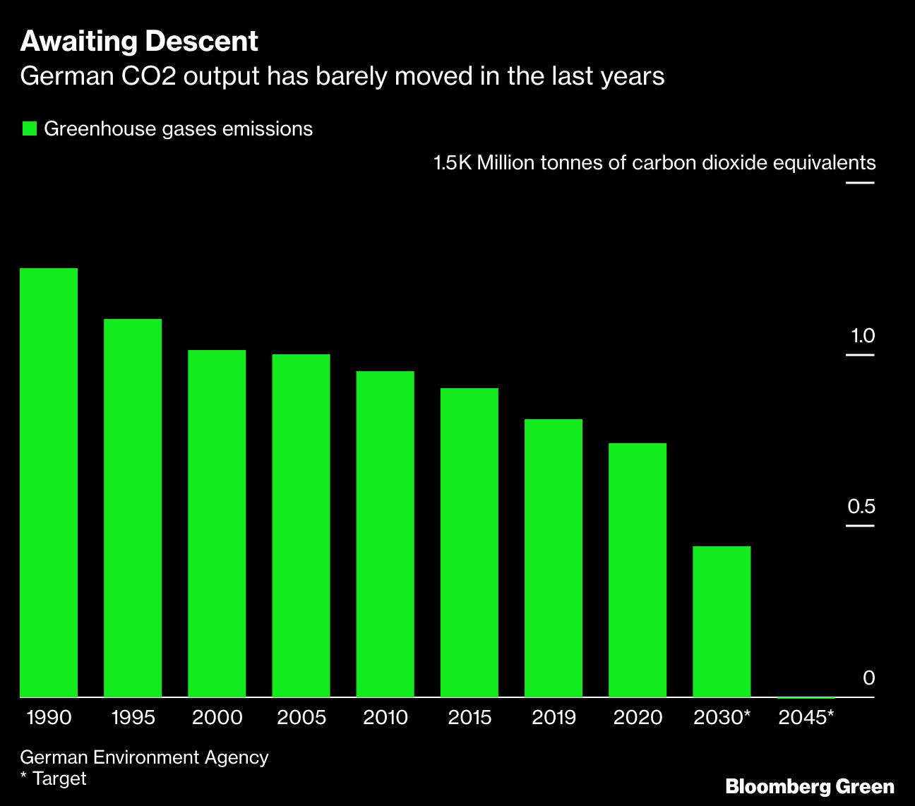 Green supporters were hoping that the party would dramatically revamp Germany’s climate policies, which aren’t enough to limit global warming to 1.5 degrees Celsius or meet the nation’s goal of being greenhouse gas neutral by 2045. Although the country hit its 2020 emissions reduction goal, it did so only because of the Covid-induced economic crunch, according to think tank Agora Energiewende.