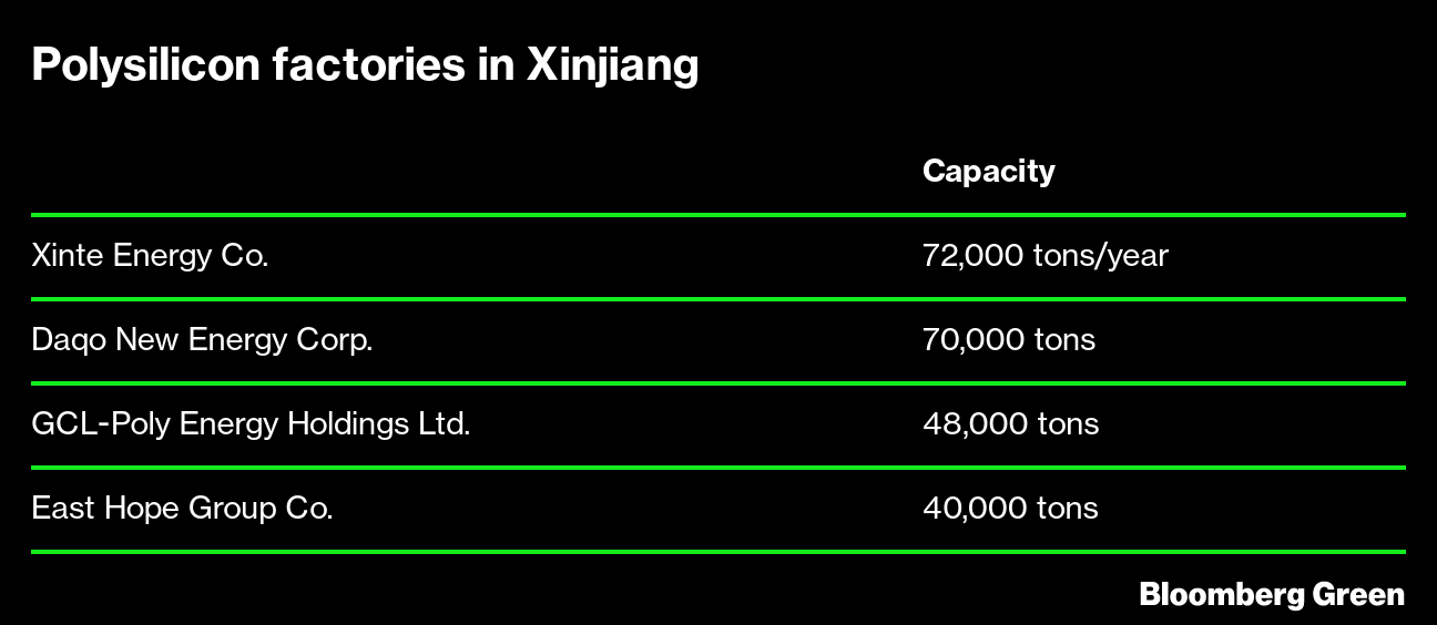 The move sheds light on a dirty secret of the solar industry: it relies on Xinjiang and its cheap coal power to produce half of its key raw material. And with demand for panels set to explode as the U.S. and China commit to more clean power, it will be even harder for the industry to quit the troubled region.