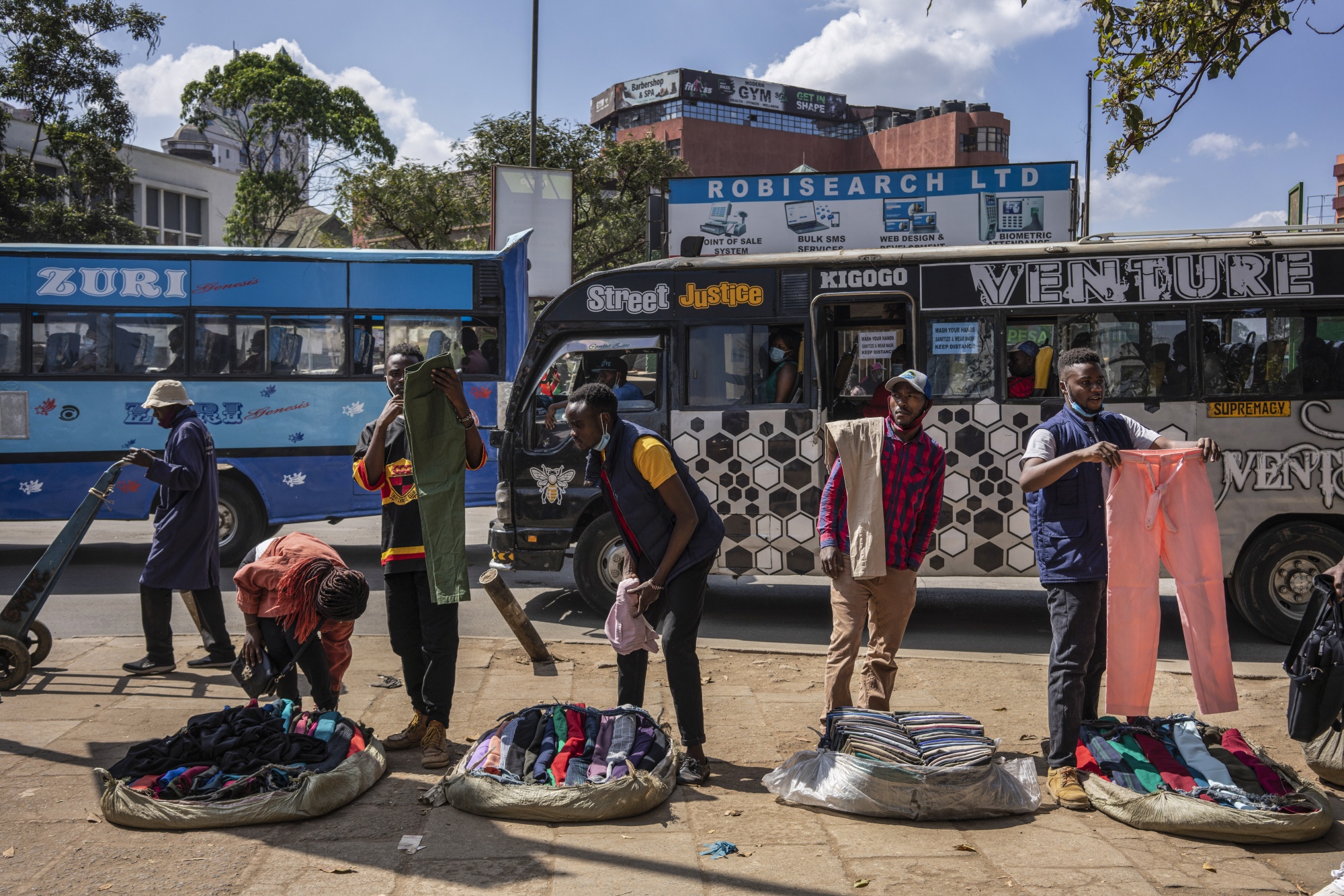 Street vendors sell second-hand clothing on a street in Nairobi in December.