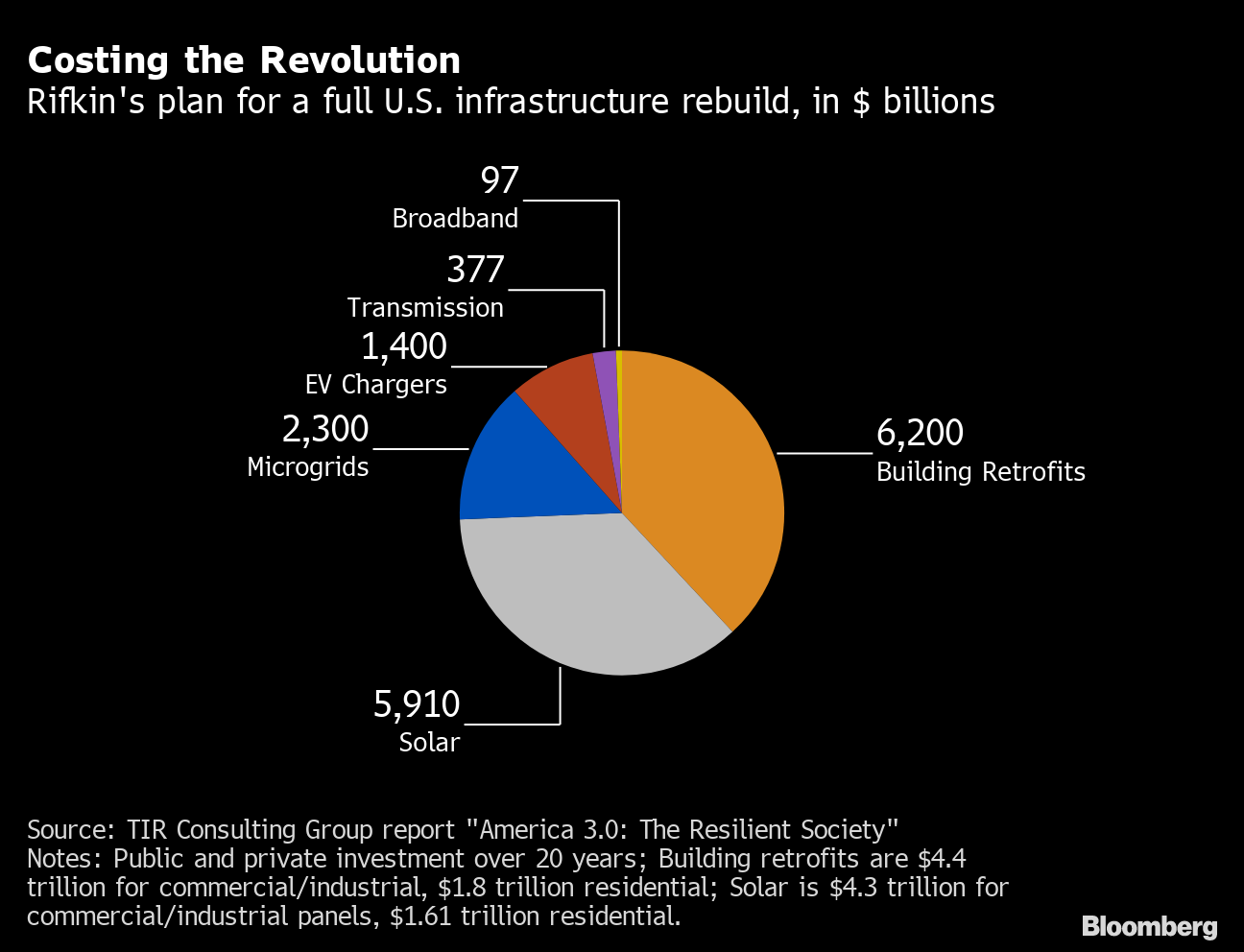 Rifkin is given to sweeping statements and acknowledges that most investment for any U.S. infrastructure revolution would come from states and the private sector. Schumer, meanwhile, is pushing a parallel $3.5 trillion bill that would resurrect some of the lost provisions.