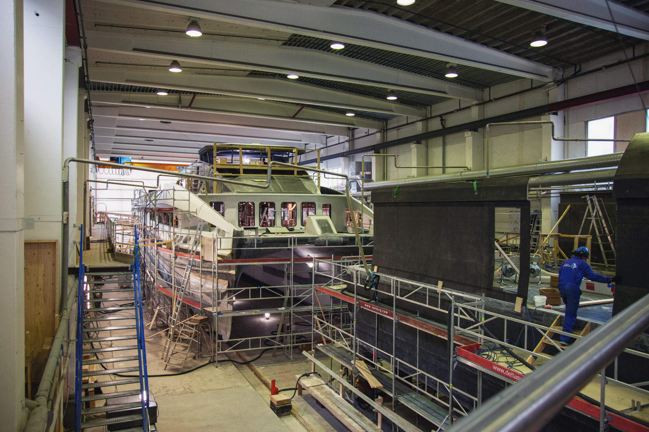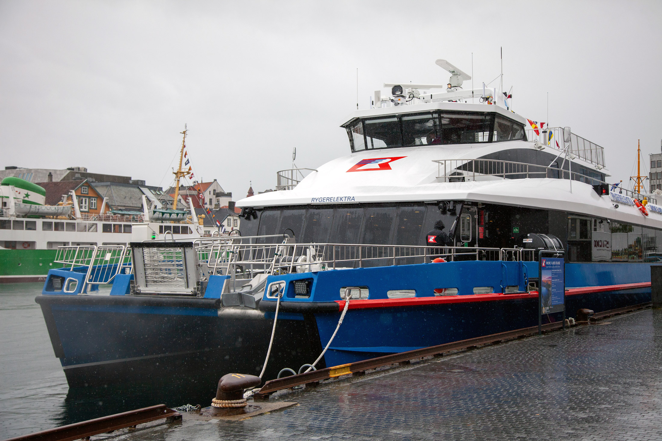 Rygerelektra was built by Brødrene Aa, a small family shipbuilding firm tucked inside a fjord a few hundred miles to the north of Stavanger. The company made a name for itself in the early 2000s as a pioneer in the use of carbon fiber fast ferries, vessels that largely cover trunk routes between cities along Norway’s west coast. They have over 60 such vessels today, covering deliveries in Norway and to Asia — workhorses that move quickly, and weigh far less than counterparts made from traditional metals.