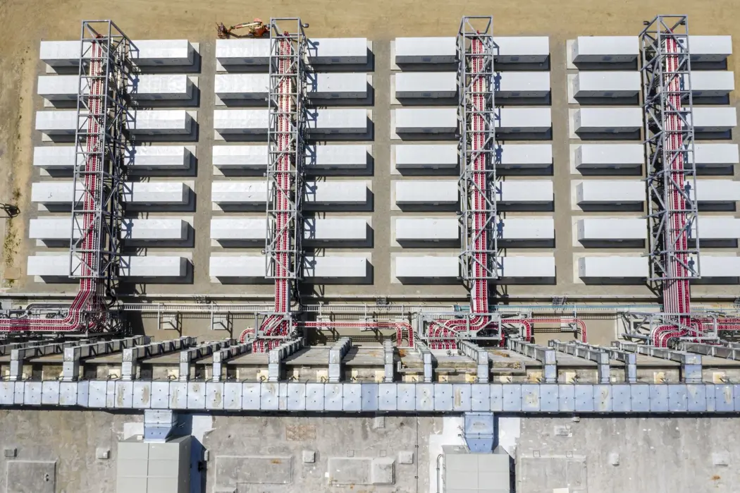 Power inverters outside the battery building at the Moss Landing Energy Storage Facility in Moss Landing, Calif.