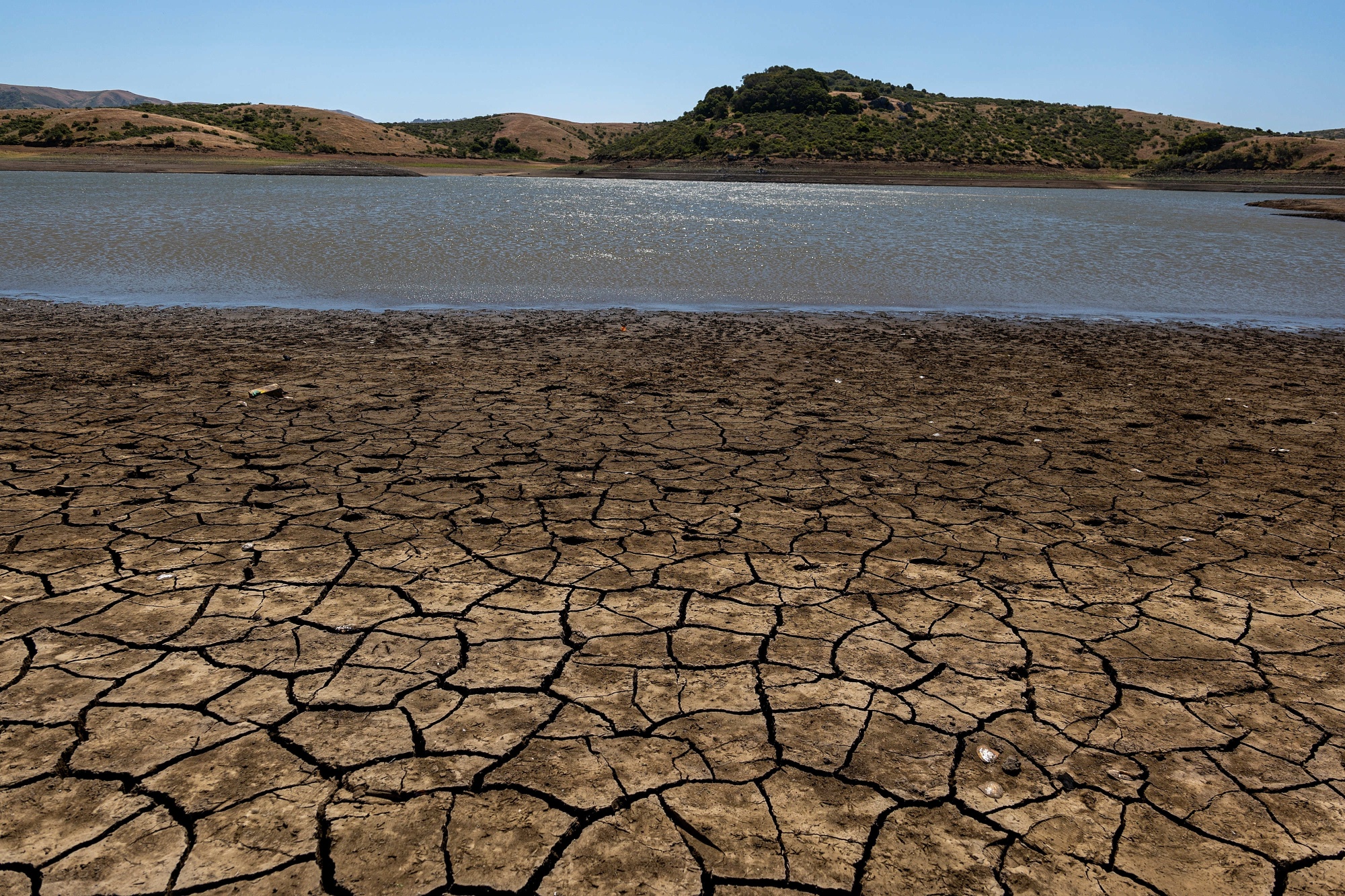 A cracked lake bed at Nicasio Reservoir during a drought in Nicasio, California on May 27.