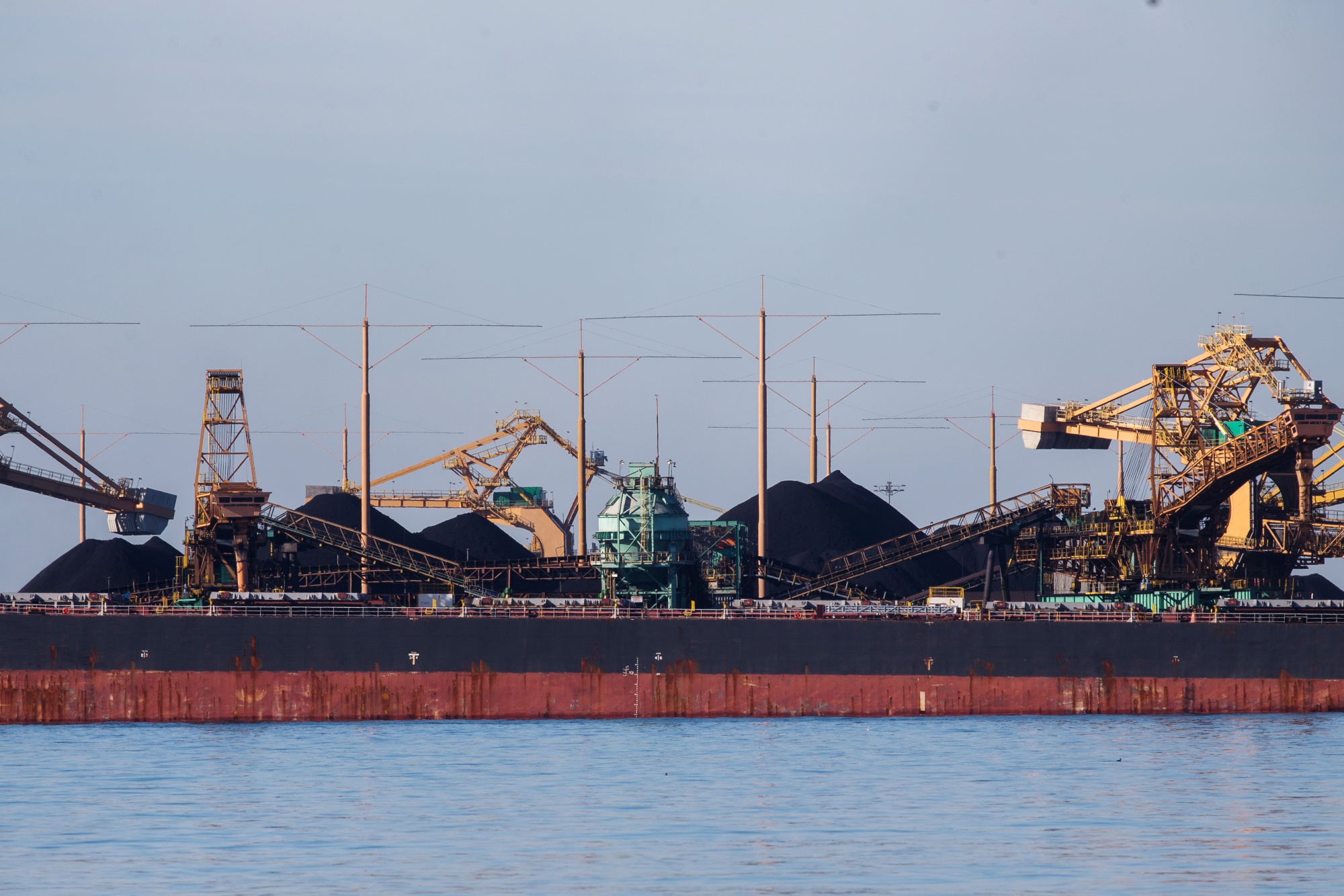 A bulk freighter is loaded with coal at the Westshore terminal in Delta, British Columbia in 2019.