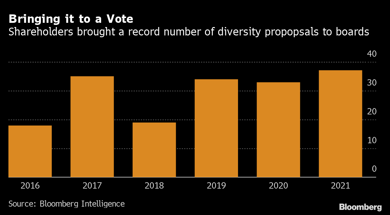 Shareholders Score Records on Corporate Diversity Push in 2021