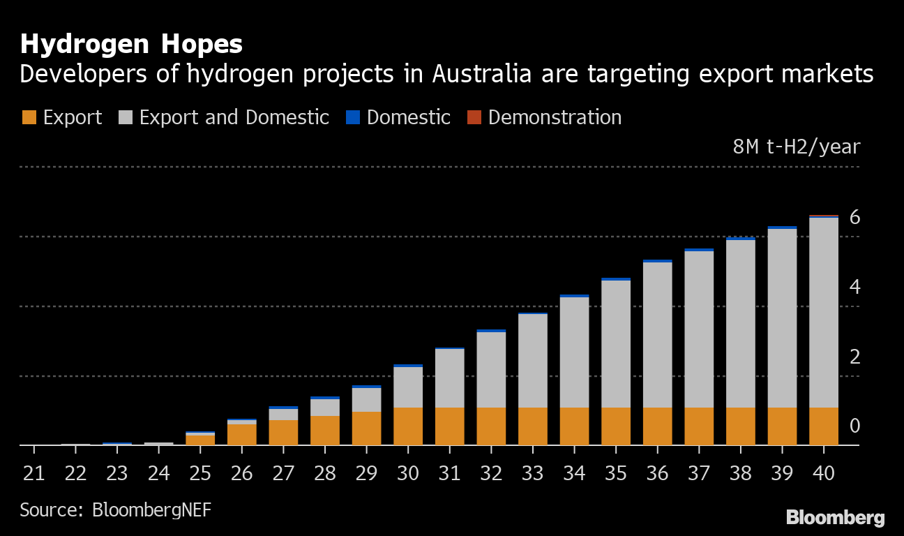 Meanwhile, Forrest’s plans in Queensland put him in direct competition with China -- the global leader in the manufacture of electrolyzers that can make hydrogen that can be stored and transported and eventually converted into carbon-free energy for power or transportation. His push to build out renewable power capacity also pits him against energy majors such as Royal Dutch Shell Plc and BP Plc, which are increasingly focusing their investment on wind, solar and other low-emissions technologies.