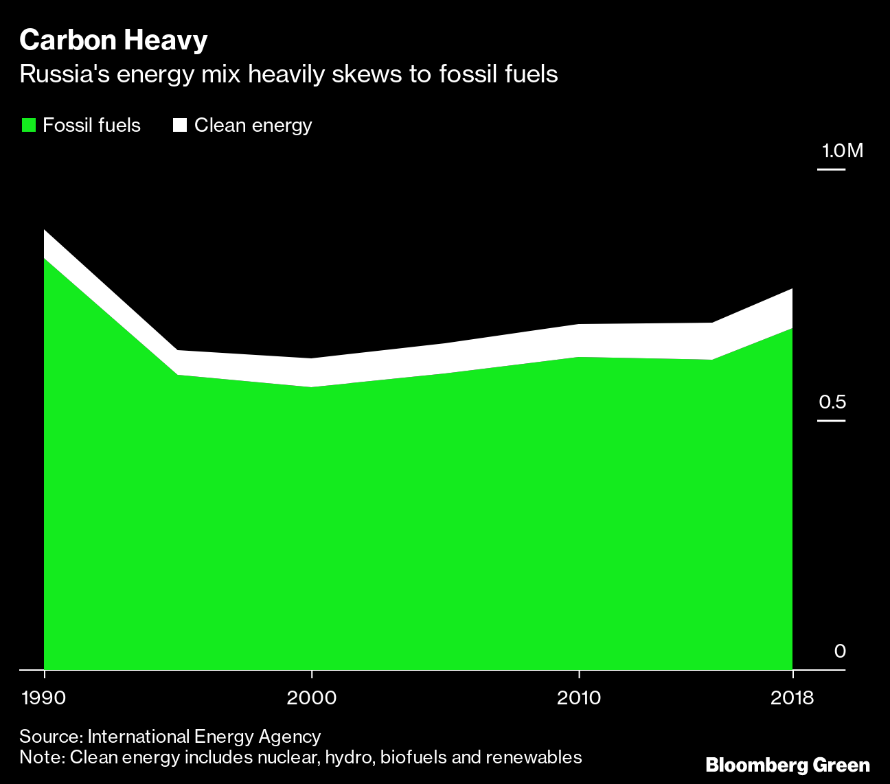 The shift in thinking means the Kremlin is likely to come to the COP26 climate change summit in Glasgow in November with proposals to synchronize its efforts to measure carbon emissions with those in Europe, according to four people familiar with the plans.While the moves hardly amount to the kind of ambitious new emissions-reduction target for Russia that western capitals were hoping for, it’s a significant step for Putin as the leader of one of the world’s largest hydrocarbon producers, who until recently belittled climate issues.