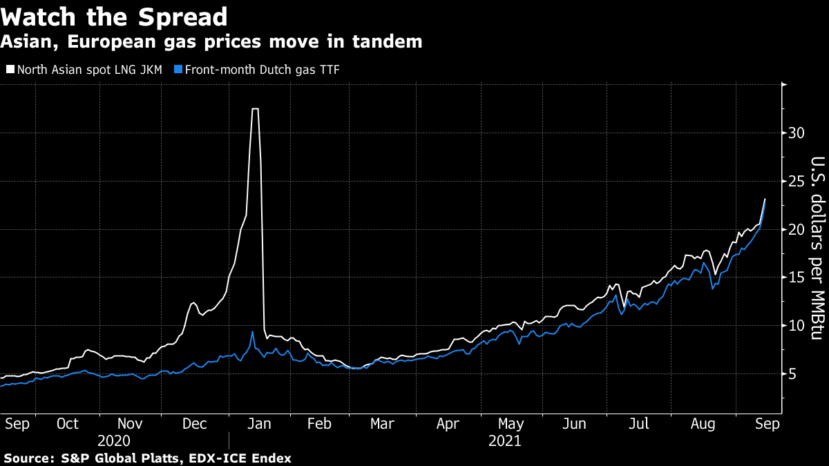 Europe’s gas prices have more than tripled this year as top supplier Russia has been curbing the additional deliveries the continent needs to refill its depleted storage sites after a cold winter last year. It’s been hard to get hold of alternative supplies, with North Sea fields undergoing heavy maintenance after pandemic-induced delays, and Asia scooping up cargoes of liquefied natural gas to meet rising demand there.