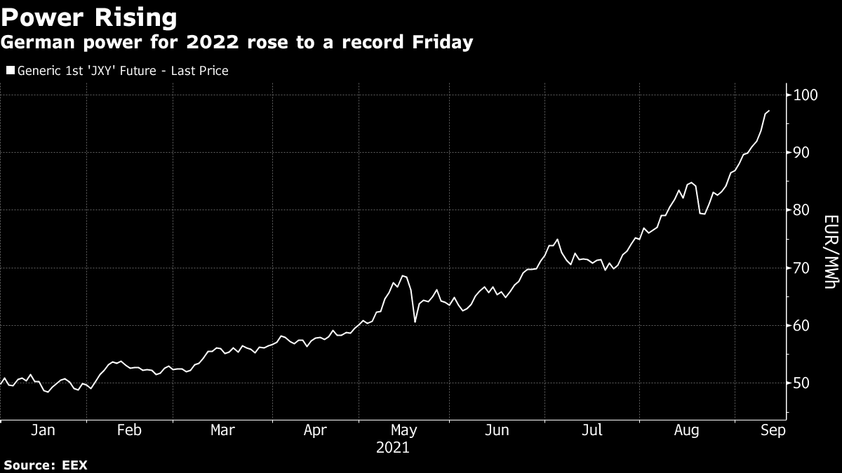 Power prices along the curve continued to surge Friday as Germany’s national weather forecaster said it expects a cold start to October following above-average temperatures this month. It’s a sign of what’s to come as Europeans enter the winter heating period and need more power and gas to stay warm.