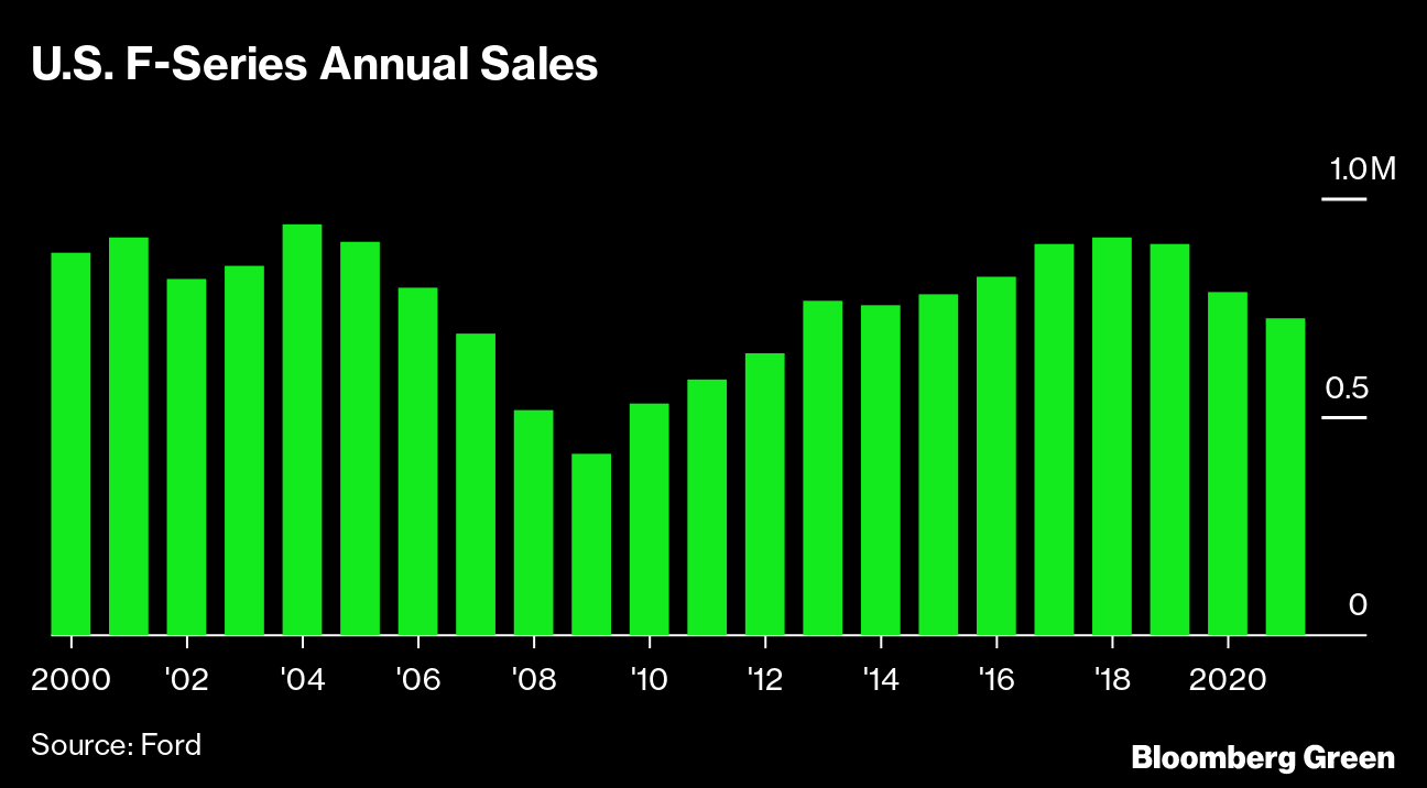(Bloomberg) -- As the top-selling model line in the U.S. for 40 years, Ford Motor Co.’s F-Series pickups hold special weight in the auto ecosystem. The lineup, led by the F-150, generates more than $40 billion in annual revenue. Only one other U.S. product—Apple Inc.’s iPhone—tops F-Series sales.