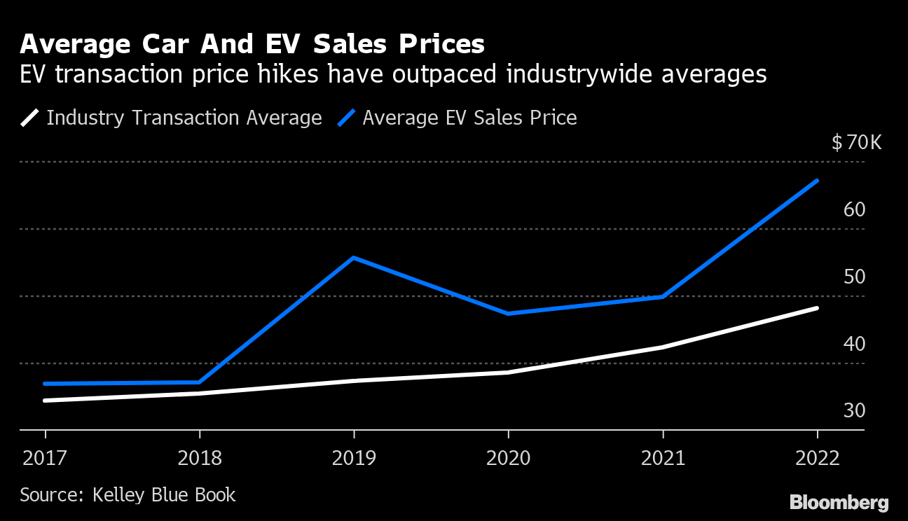 The average transaction price of a new electric car was $66,997 in June, soaring almost 14% from a year earlier, according to Kelley Blue Book. The industrywide average that includes both traditional vehicles and EVs jumped 13%, to $48,043, in the same period.