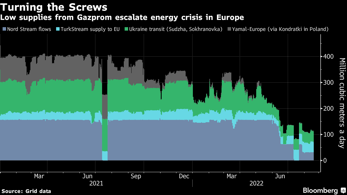 Hours ahead of the planned outage, Gazprom PJSC set an unsettling tone by notifying French utility Engie SA that it would halt deliveries from Thursday because of a disagreement over payments. The move widens cutbacks to the continent as Moscow retaliates for sanctions related to its invasion of Ukraine.