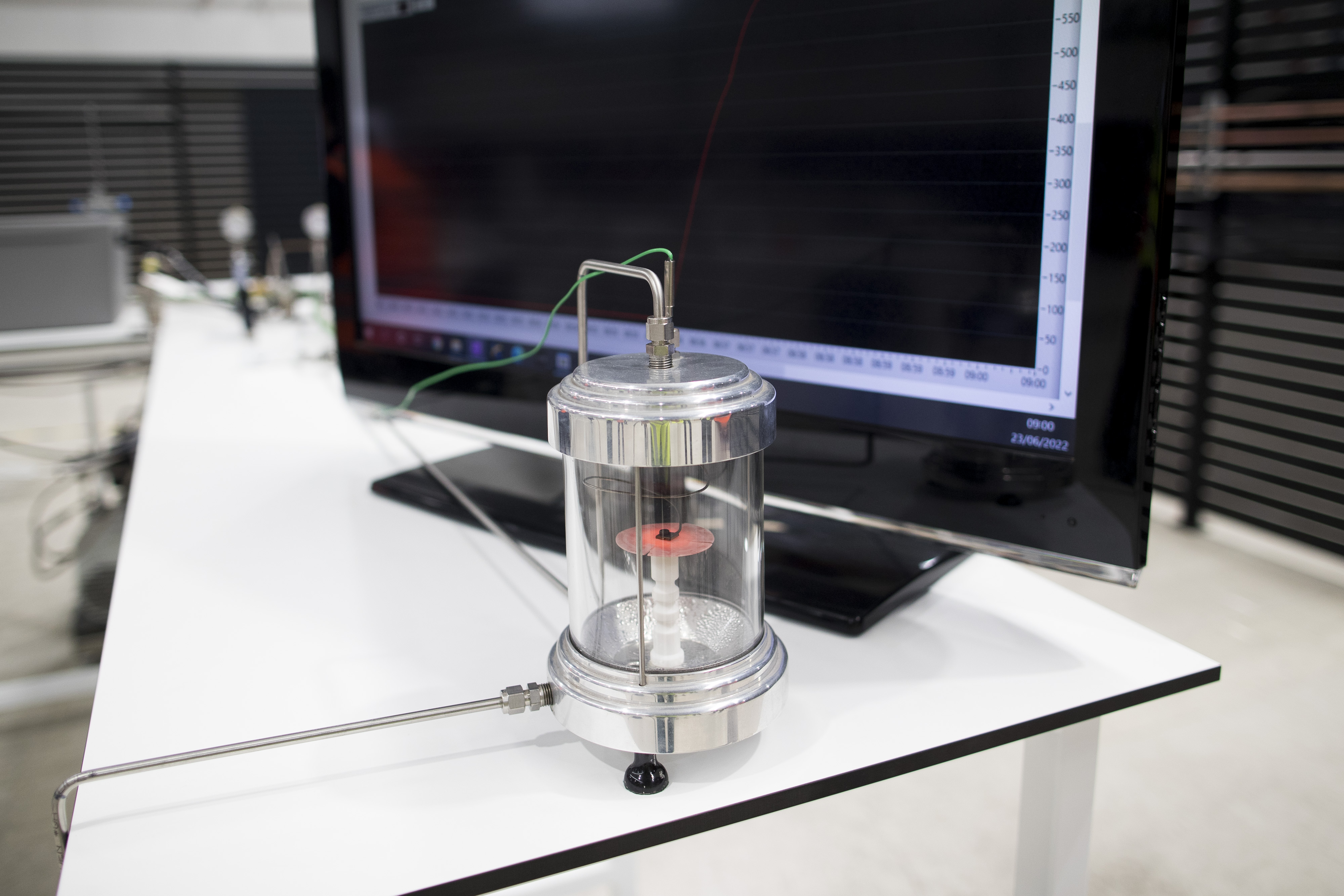 Wearing high-vis jackets and safety goggles, Chief Technology Officer Steve Heaton and another member of the team demonstrated an experimental model that looks like a French coffee press. Bottled hydrogen and oxygen are fed into a glass cylinder containing the secret catalyst, which quickly turns orange as it heats up to around 700 degrees Celsius (1,292 Fahrenheit). If the technology can scale up, it could ultimately allow power plant operators that burn coal to retrofit generators to run on green hydrogen without having to construct a completely new plant.