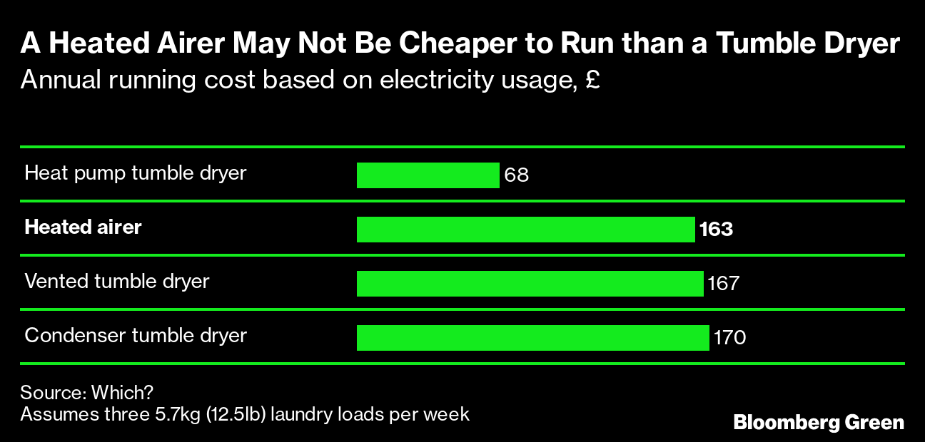 (Bloomberg) -- Charlie Pears doesn’t own a tumble dryer. Last winter, when she and her partner Joe needed to dry laundry, they’d just turn on the heat in their 100-year-old house in northeast England, draping clothes over radiators.