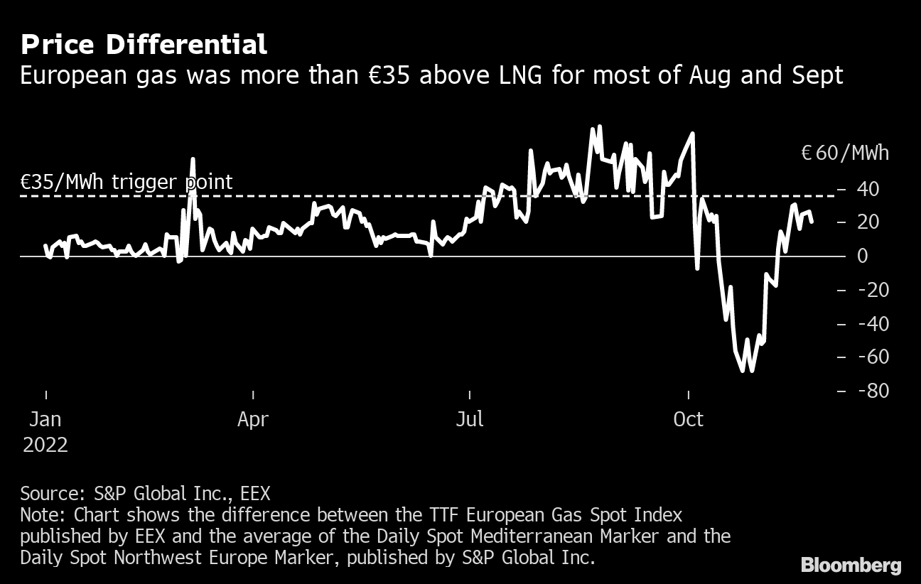 The new cap requires several triggers before it can take effect: benchmark Dutch TTF gas prices must be above €180 per megawatt-hour, and they also must be at least €35 greater than global liquefied natural gas prices.