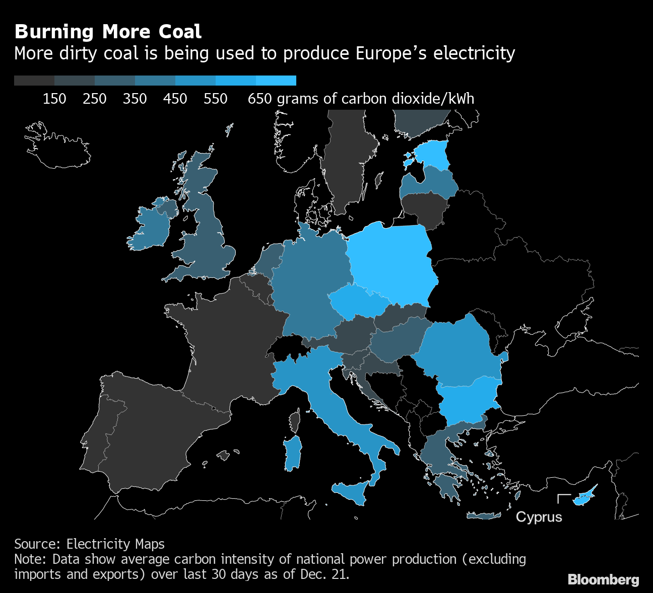Europe’s largest economy is burning the fossil fuel for electricity at the fastest pace in at least six years, data compiled by Bloomberg show. It’s also poised to be one of the few nations to increase coal imports next year.