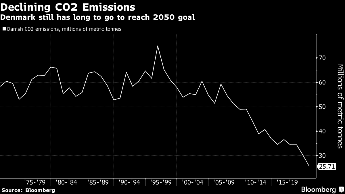 It’s the most recent in a string of policies set to help the government meet one of the world’s most ambitious climate targets. By 2030, Denmark plans to reduce carbon emissions by 70% compared with 1990-levels. In her speech, Frederiksen also pledged a more streamlined tax on emissions for businesses to ensure that the highest emitters pay the highest taxes.