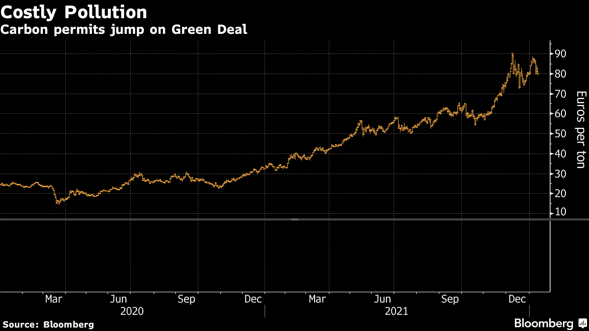 Expectations of stricter rules have helped send carbon prices up by 146% last year to a record of 90.75 euros in December, triggering calls from some EU governments to curb speculation in the market. Liese -- a member of the European People’s Party, the biggest group in the EU assembly -- stopped short of proposing any amendments to the existing complex rules on preventing excessive price growth.