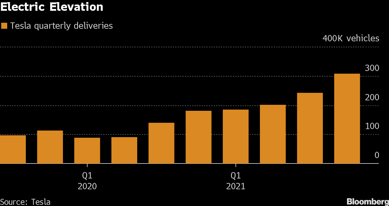 The record quarter underscores the “green tidal wave taking hold” for Tesla and Chief Executive Officer Elon Musk heading into 2022, Daniel Ives, an analyst at Wedbush Securities, said in a note to clients. The strong results also point to robust demand in China and Tesla’s skill at navigating the global semiconductor shortage, he said. The company’s previous delivery record was 241,300, set in the third quarter.