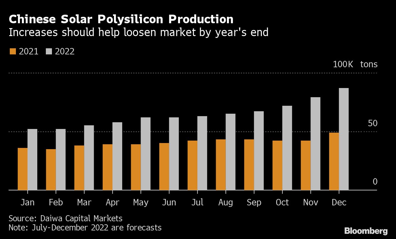 The polysilicon market is expected to remain tight through September, according to Daiwa, before new capacity comes online in the fourth quarter and loosens production bottlenecks.