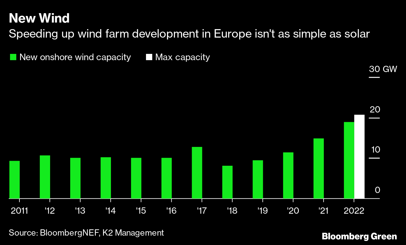 Prioritizing major projects would help quickly add capacity. There’s nearly 19 gigawatts of wind power that’s been approved or under construction across Europe and the U.K. — roughly equal to the total installed wind power capacity of France. Finishing those projects would be enough to meet all of BloombergNEF’s expectations for additions this year. Adding even a minor fraction of the smaller wind farms that are furthest along in development would see Europe surpass BloombergNEF’s 2022 target.