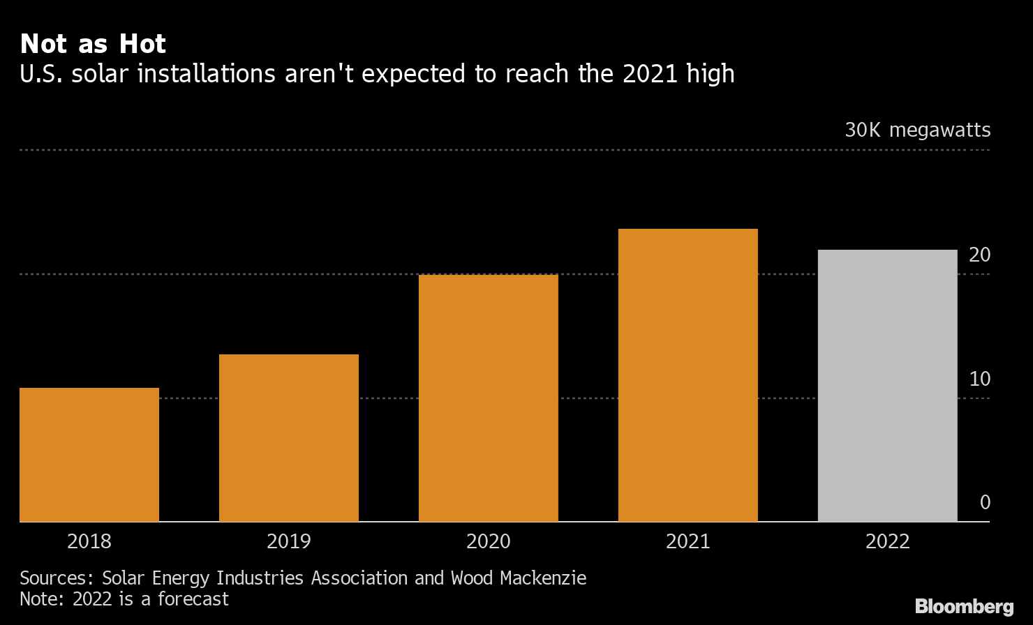 Because the four countries supply about 80% of U.S. solar imports, the dispute threatens to intensify existing headwinds for America’s solar industry, which is already seeing slower growth amid higher costs, shipping delays and supply-chain disruptions. That’s a challenge to President Joe Biden’s efforts to rapidly boost renewable power projects nationwide.