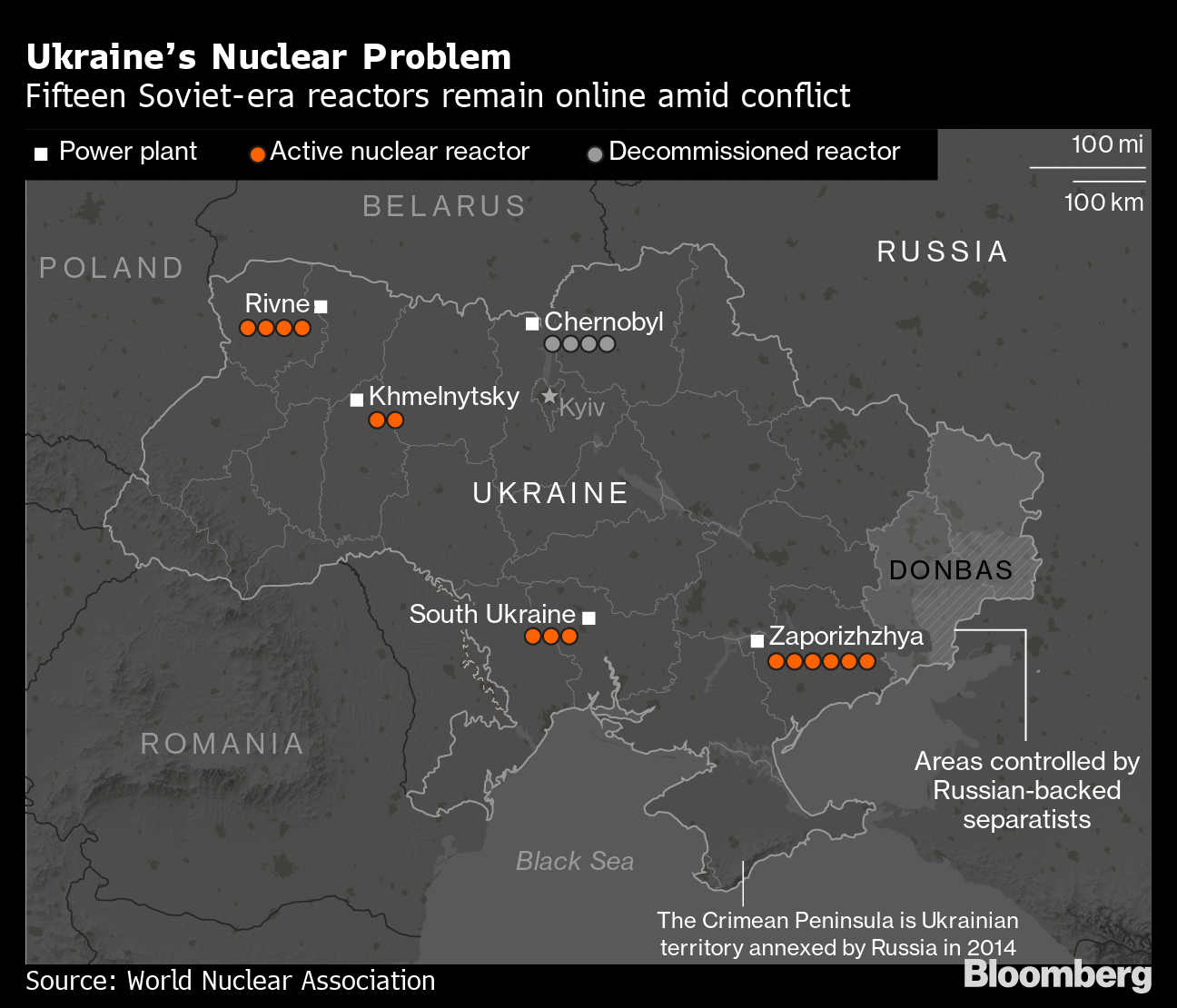 The 2,600 square kilometer (1,000 mile) Chernobyl exclusion zone, site of the deadly 1986 meltdown, also houses a nuclear-waste facility, where spent fuel from Ukraine’s reactors is encased for safe long-term storage. Operator Energoatom said the power cut could elevate safety risks because the temperature of the spent fuel will gradually rise, potentially resulting in a release of radiation.Â