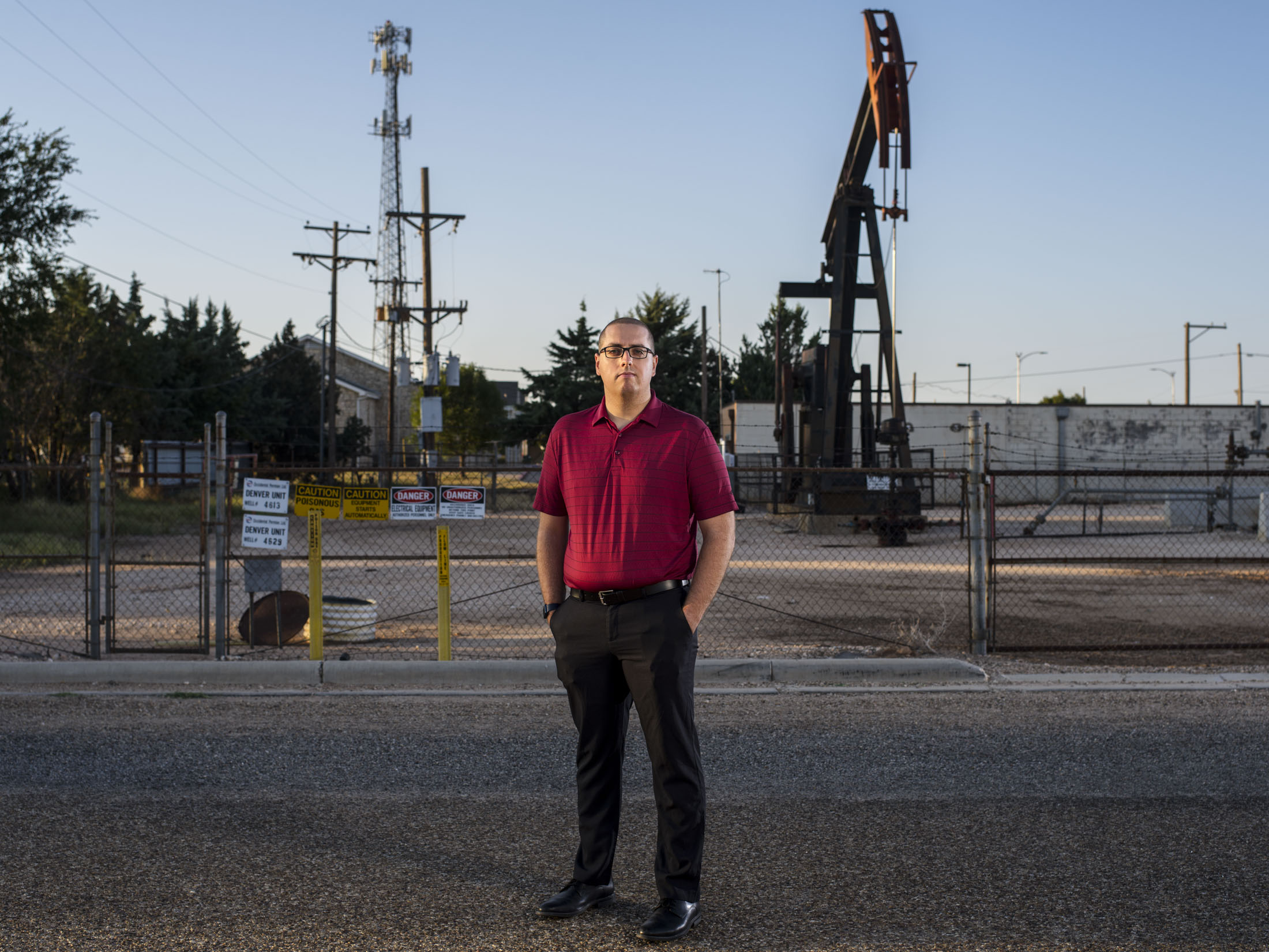 “We have conversations like that all the time, going back and forth,” Heath, 29, said. Sporting an Apple watch and grey dress slacks, Heath doesn’t dress much like a cowboy. His eyes light up with anticipation when he talks about wanting to “future-proof” his community of Denver City, named for a petroleum company, not the capital of Colorado. It’s impossible to miss the scores of rusty crude wells scattered around town, even bumping up against City Hall — at sunset, the bobbing heads of the pumpjacks are silhouetted against the horizon, like a herd of grazing donkeys on the open plains.