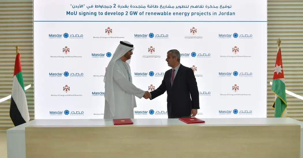Masdar has signed a memorandum of understanding (MoU) with Jordan’s Ministry of Energy and Mineral Resources to explore collaboration in renewable energy projects with a total capacity of up to 2 gigawatts (GW).