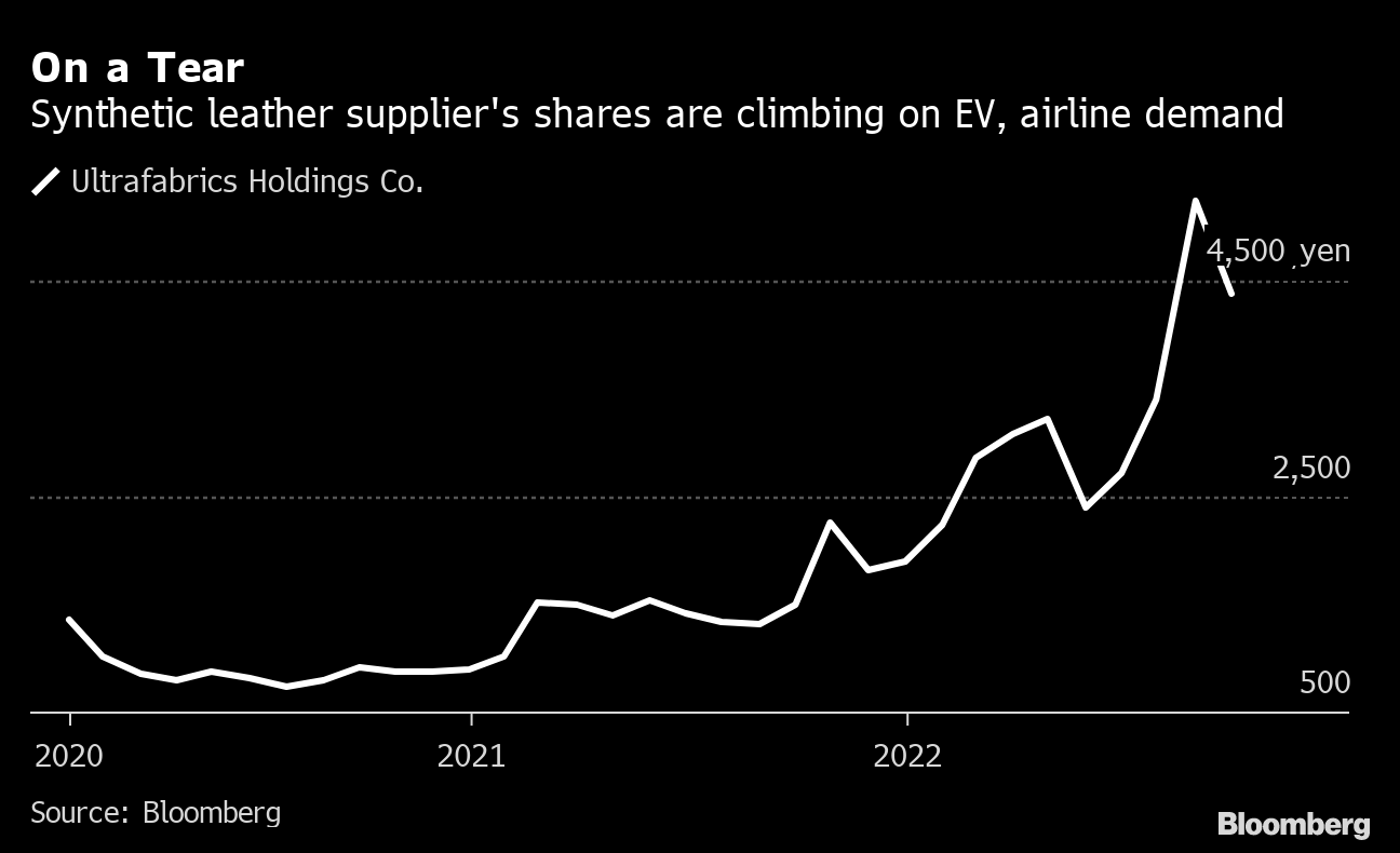 “EV makers like Tesla are increasing their use of synthetic leather,” said Katsuhiko Ishibashi, an analyst at Ichiyoshi Research Institute Inc. “Ultrafabrics is also increasing its shipments to EV makers.”