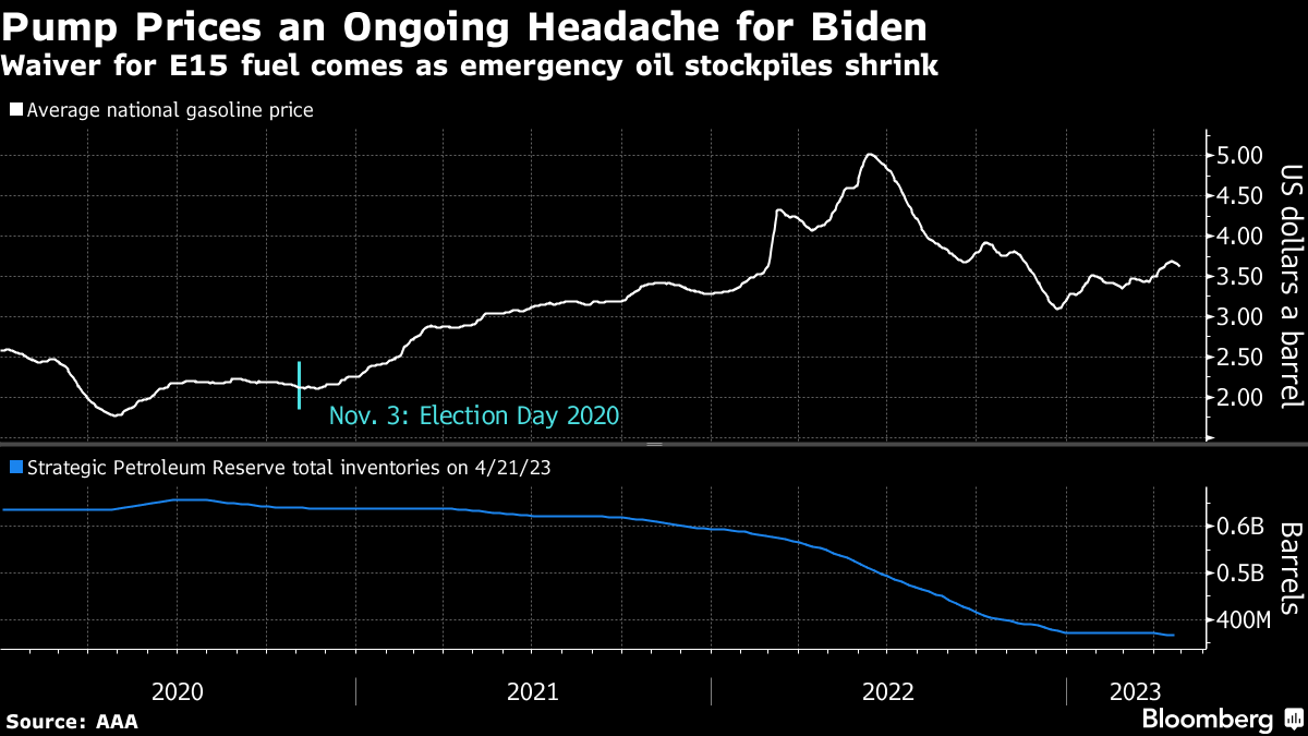 There are political benefits, too. While gasoline prices aren’t near last year’s highs, they remain elevated heading into the summer driving season — and are one of the most visible forms of inflation, weighing on Joe Biden’s reelection bid. If prices spike again, Biden could point to the E15 action as an attempt to provide relief.