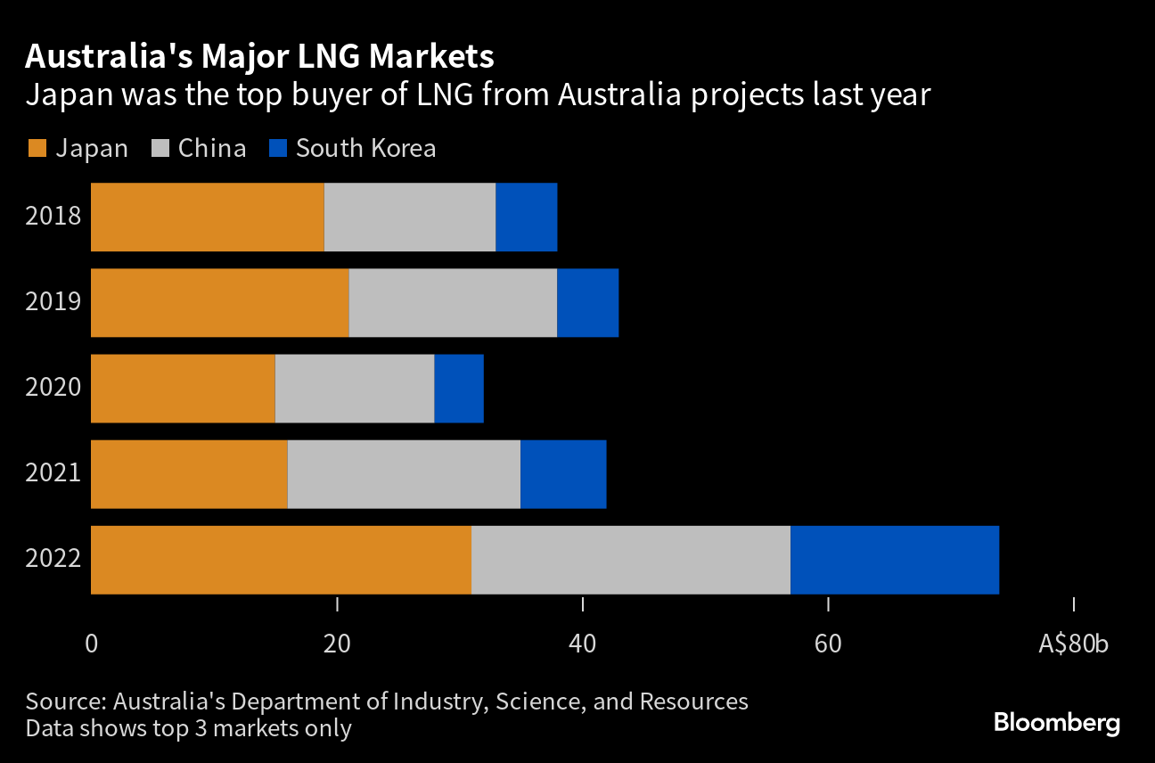 Japan, the largest buyer of Australian LNG, has been striking new pacts with major shippers after last year’s energy crisis prompted the government to press companies to lock in supply and invest in projects. Japan and Germany used a Group of Seven summit earlier this year to call for support for new investment in gas projects.