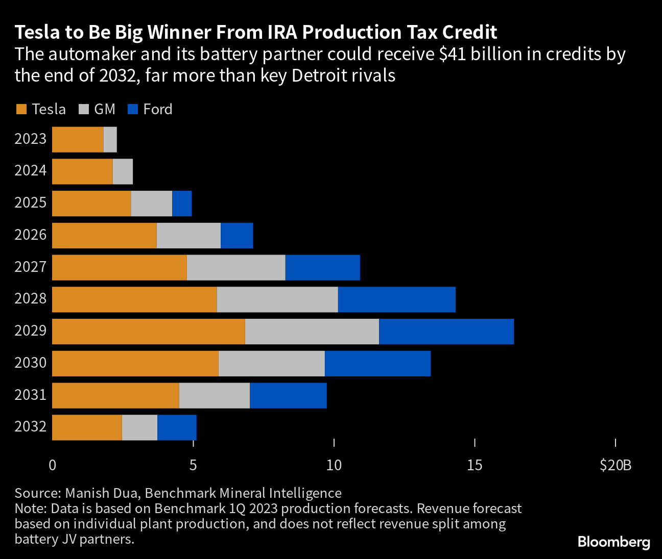 To boost sales against a backdrop of inflation and greater competition, Tesla has said it will use its IRA production tax credits to keep slashing prices for consumers. That crusade is putting pressure on auto incumbents to follow suit, adding to profitability challenges as they electrify their lineups.