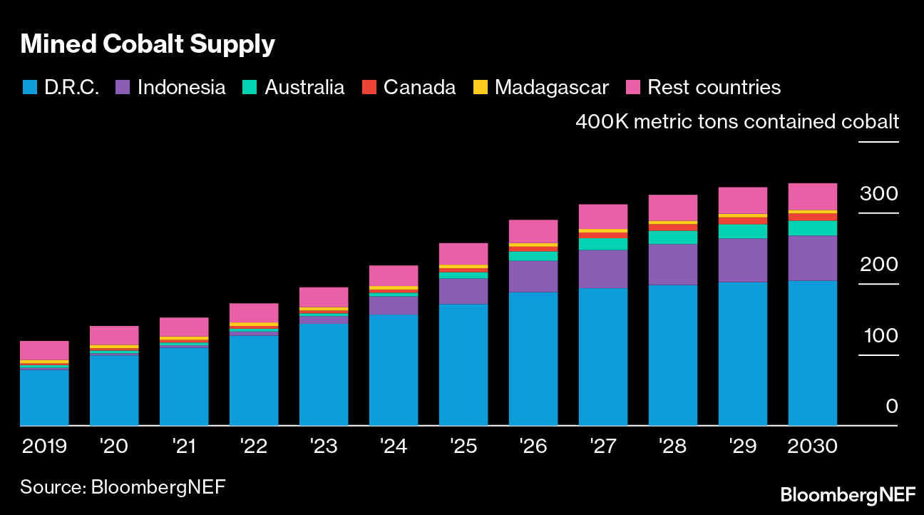 Still, demand for cobalt is expected to double by 2030, the Cobalt Institute industry group says. At the moment, most of that metal is processed in China, Congo’s largest trading partner by an order of magnitude.