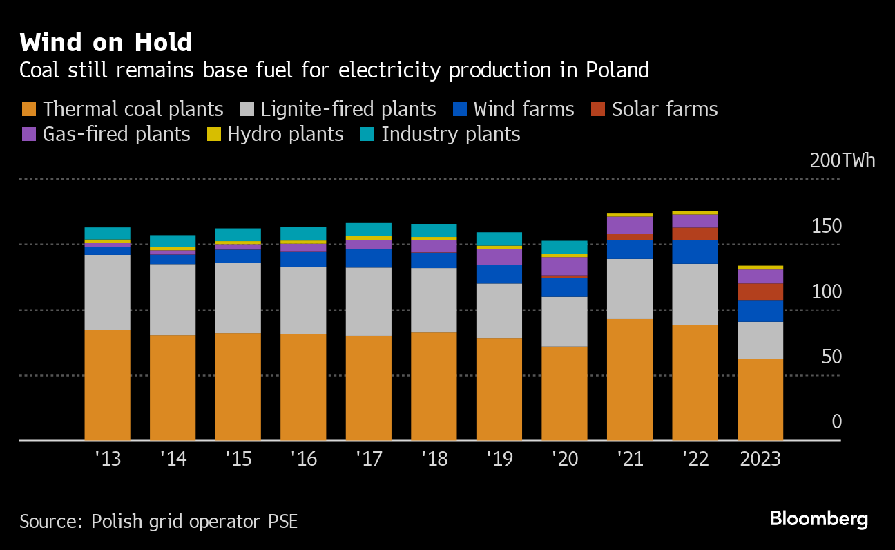The new coalition plans to speed up the country’s exit from coal, which the outgoing Law & Justice government wanted to keep until 2049 and was criticized for blocking investment in onshore wind farms.