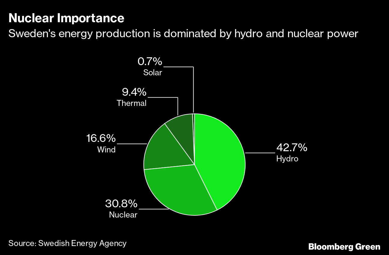 As part of its agreement with the Sweden Democrats, the government also asked state-run utility Vattenfall AB to build new nuclear power stations to help meet the country's climate commitments and growing electricity needs. Nuclear power currently provides 31% of Sweden’s energy, while hydropower accounts for 43% and wind 17%. Polls ahead of the October election showed that 60% of the population in favor of new reactors.