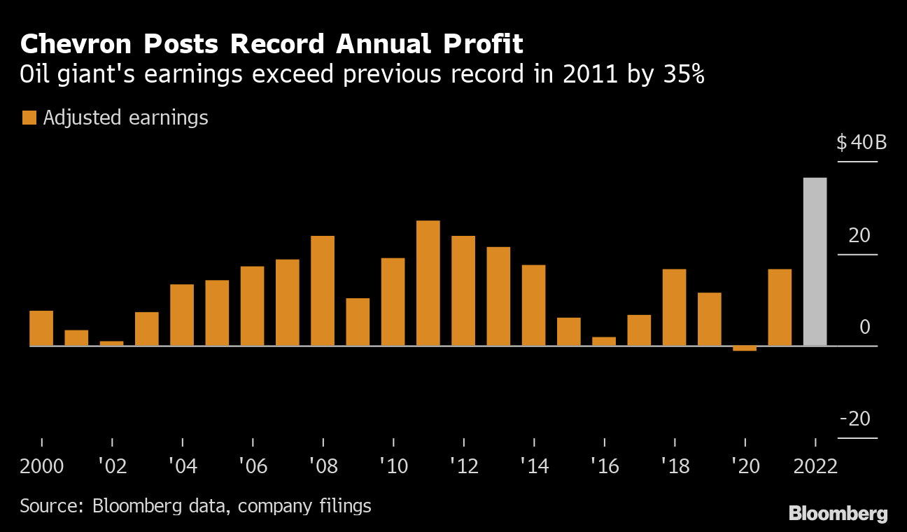 Chevron is the first of the five supermajors to report earnings, with Exxon Mobil Corp. scheduled to post results on Jan. 31, followed by Shell Plc, BP Plc and TotalEnergies SE in the coming weeks.