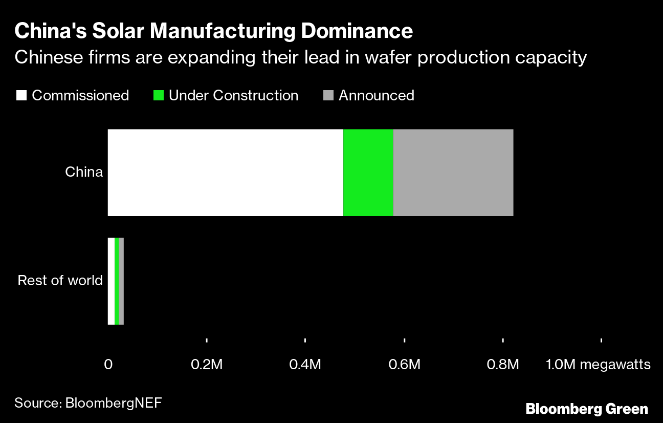 The move underscores the growing strategic importance governments are placing on solar manufacturing as the technology becomes the planet’s biggest source of new energy. Countries from the US to India are trying to develop domestic supply chains to chip away at China’s advantage.