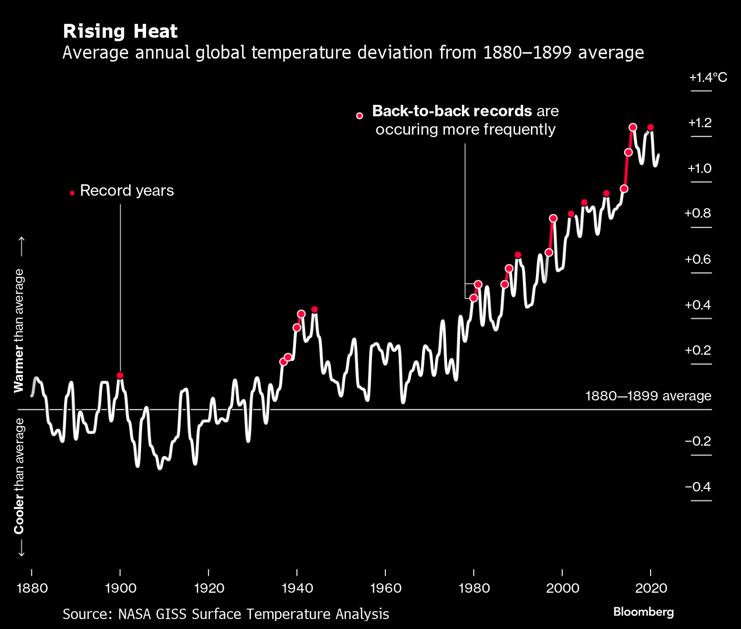 This acceleration of heat is the result of burning enough fossil fuel to raise global average temperatures about 1.2C since the Industrial Revolution. And we’re not yet halfway to Peak Heat.