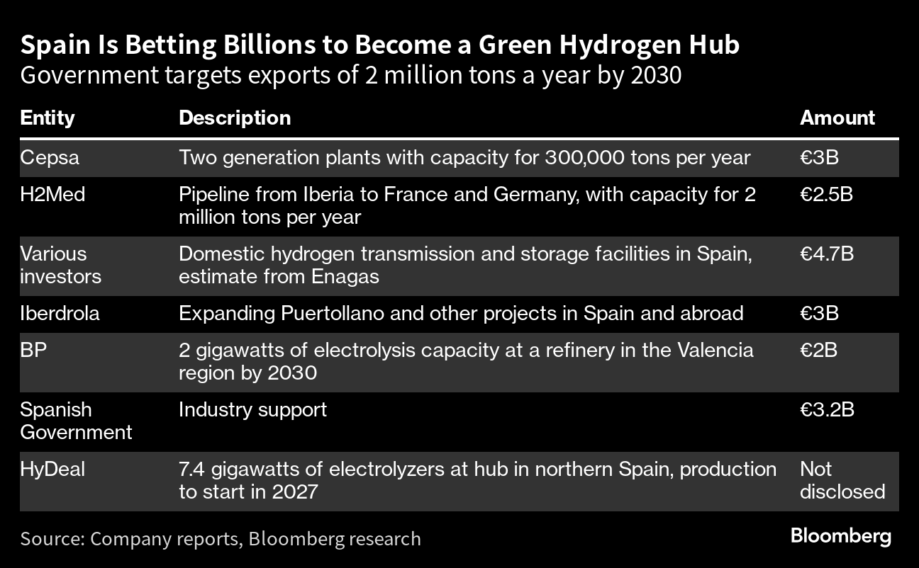 “Spain is in a unique, privileged position to become a kind of Saudi Arabia of green hydrogen,” said Carlos Barrasa, vice president for clean energies at local refiner Cepsa SA, which is investing €3 billion in projects dubbed Andalusian Green Hydrogen Valley.