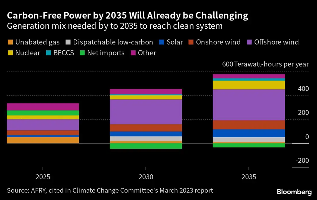 The Conservatives have pledged to make electricity carbon-free by 2035, a goal that will require new generation to be built quickly to replace gas-fired power that provides more than a third of supply now.