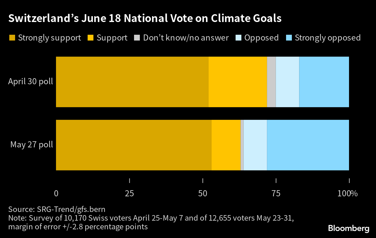 Many national legislatures have passed climate laws, and all 10 of the world’s biggest economies have now committed to net zero targets. Switzerland’s distinctive approach to democracy means its voters will have an unusually direct say in how the government deals with reducing its emissions. Campaigns for and against the law will be familiar to anyone who watched the tug-of-war over the Inflation Reduction Act in US and most any other climate legislation introduced elsewhere: One side argues that urgent action is needed to slow global warming, the other highlighting what it claims are the painful changes that will have to be undertaken to get there.