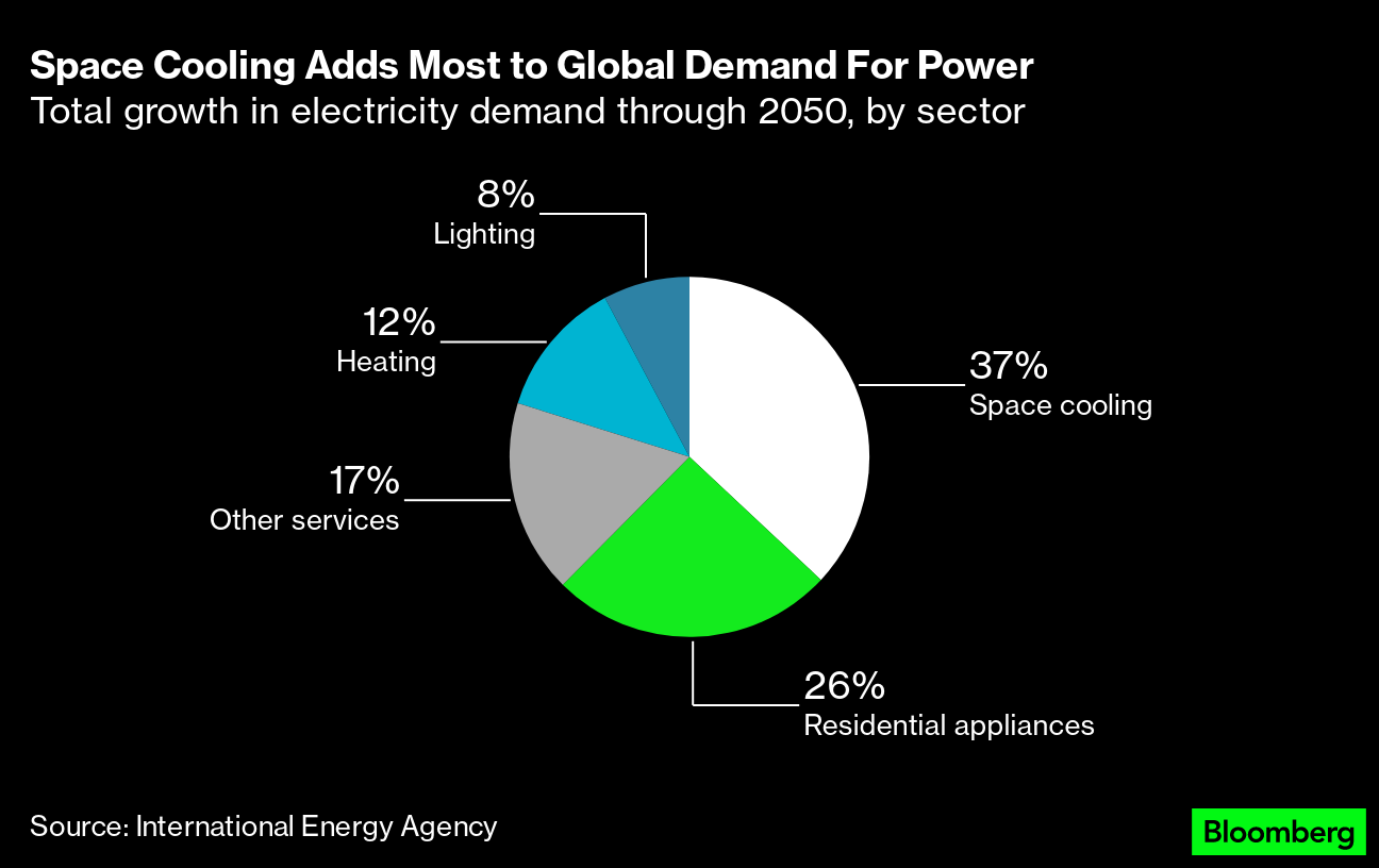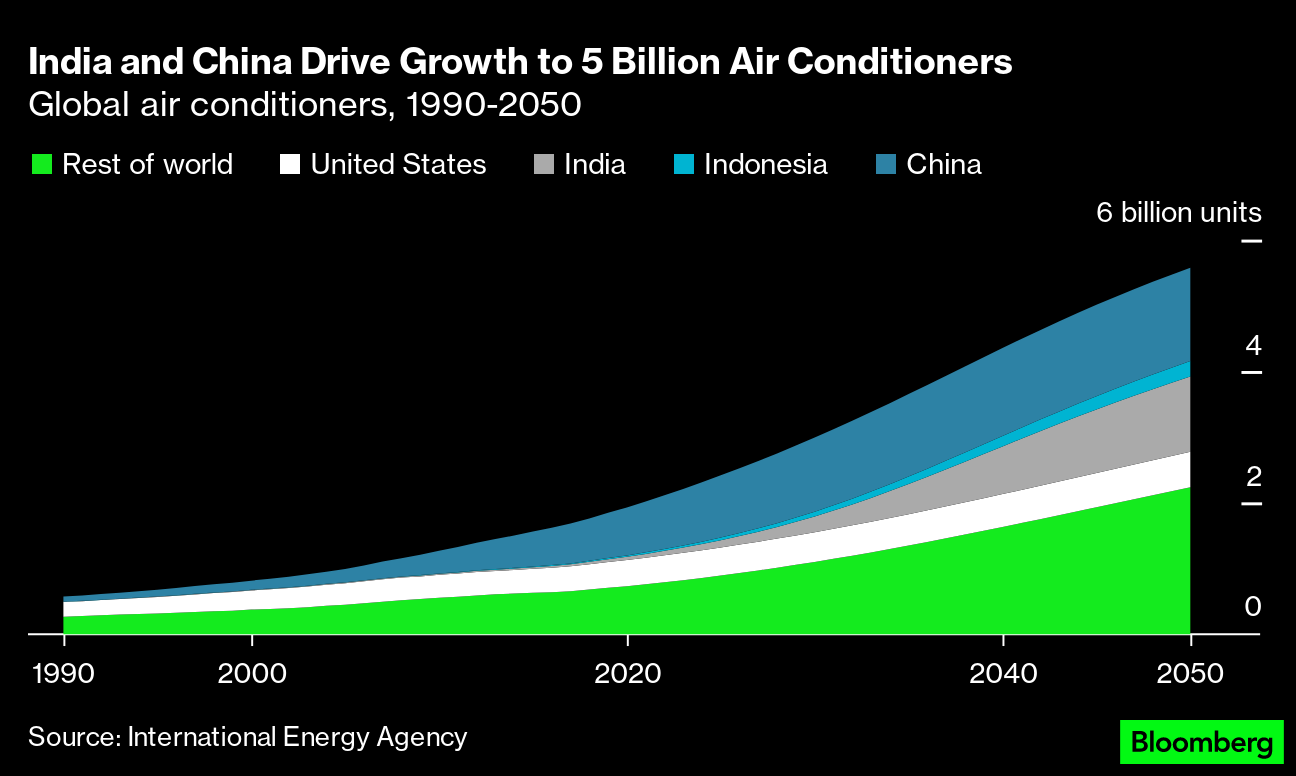 (Bloomberg) -- A warming world is making the need to stay cool more pressing. Hot countries are getting hotter, tipping normal summer temperatures into dangerous territory more frequently. Temperate countries are experiencing heat waves that were once unthinkable.