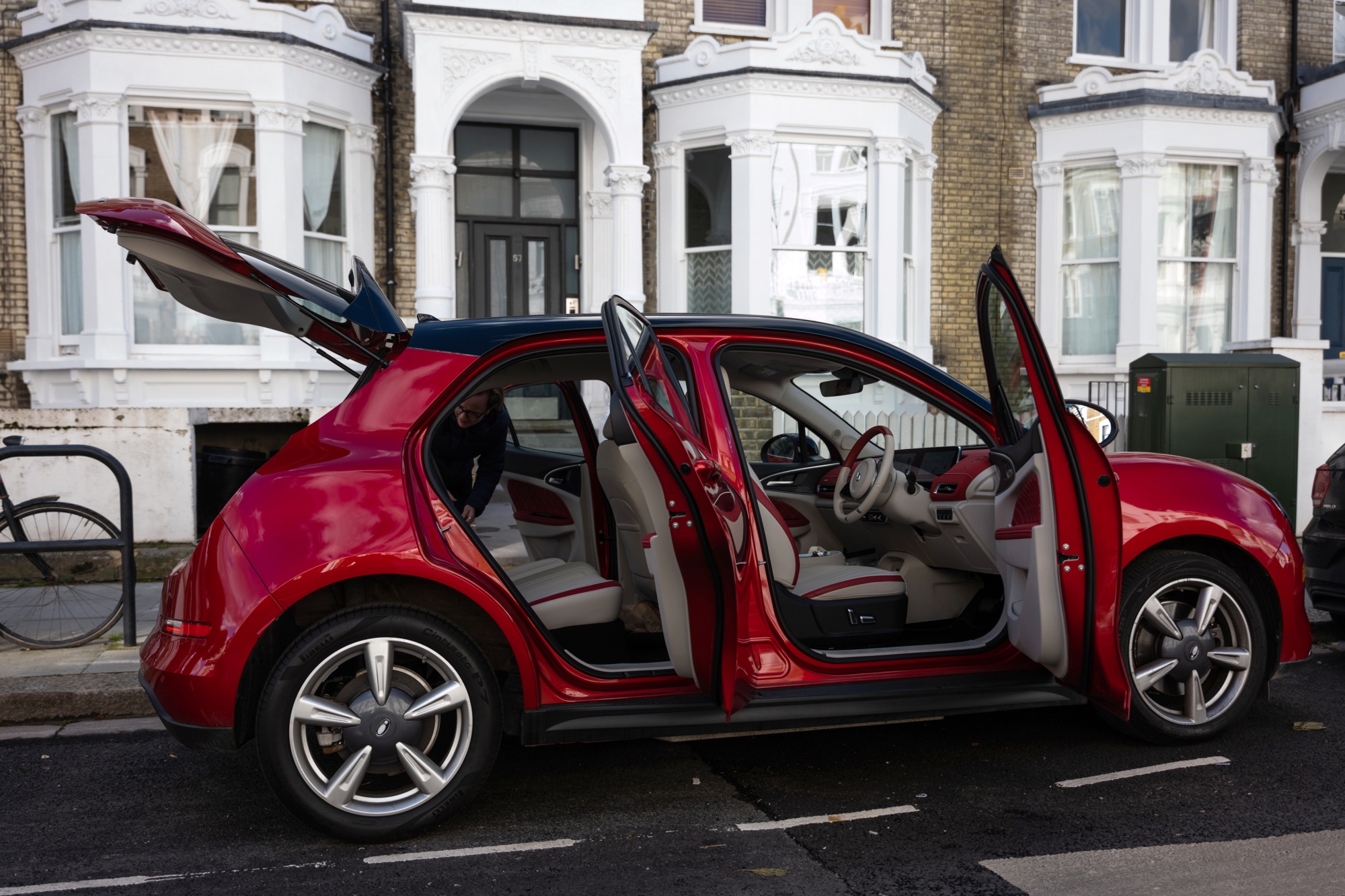 Ora’s Funky Cat is a bit more robust. Unlike the Fortwo, it has seating for five and can stretch almost 320 kilometers on a charge, enough to drive from London to Leeds, roughly one-third the length of the island. Still, it is one of the lightest EVs in the UK, in part because its battery has a capacity of just 48 kWh. For city driving — and most people’s commute — that’s plenty.