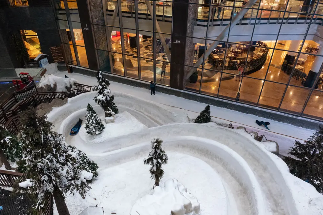 When Eman Alseyabi, 23, wants to let off steam during hot summers in Abu Dhabi, she heads to the mall. Outdoor temperatures in the UAE capital routinely reach 43C (109F), but the website for Snow Abu Dhabi, which opened in Reem Mall in June, promises “a temperature of -2°C and a snow depth of 500 mm” (19 inches). Its 20 attractions, spread across 9,700 square meters (104,000 square feet), include a sledding hill and a toboggan ride.