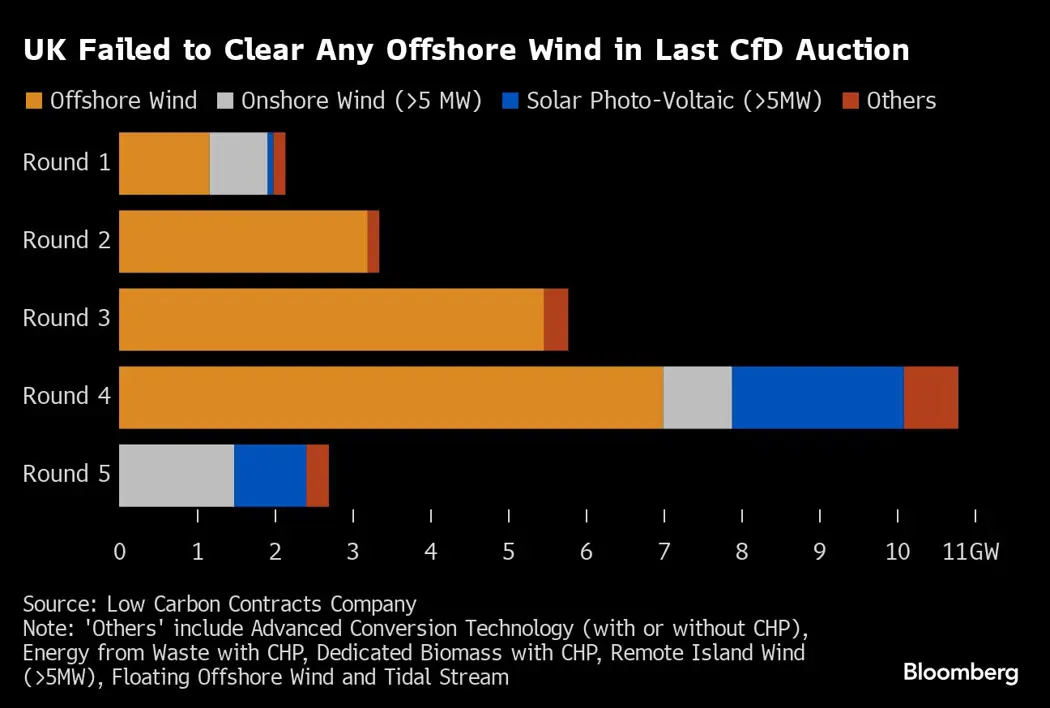 In the UK’s clean energy auctions, companies compete for contracts based on how cheaply they can build a project to supply power, with the Contracts for Difference program ensuring they receive a fixed price for each megawatt-hour of power their turbines produce.