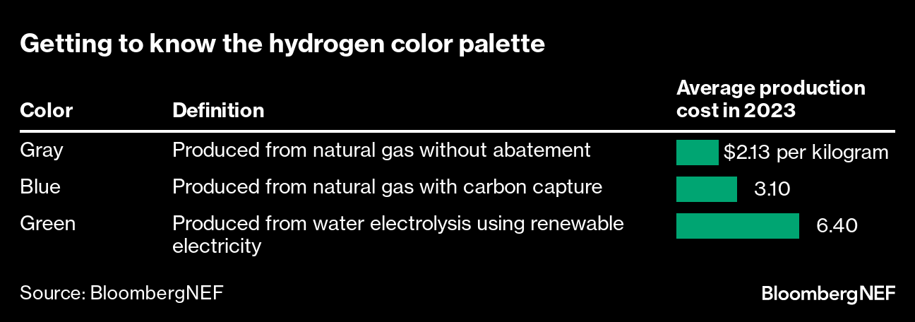 Hydrogen, the basic chemical element that fuels the sun, has the potential to generate energy with hardly any CO2 emissions. But unlike solar power or wind, hydrogen first needs to be extracted. That can be done in a number of ways, some of which are cleaner than others. For now, the most common — and cheapest — forms of production rely on fossil fuels.