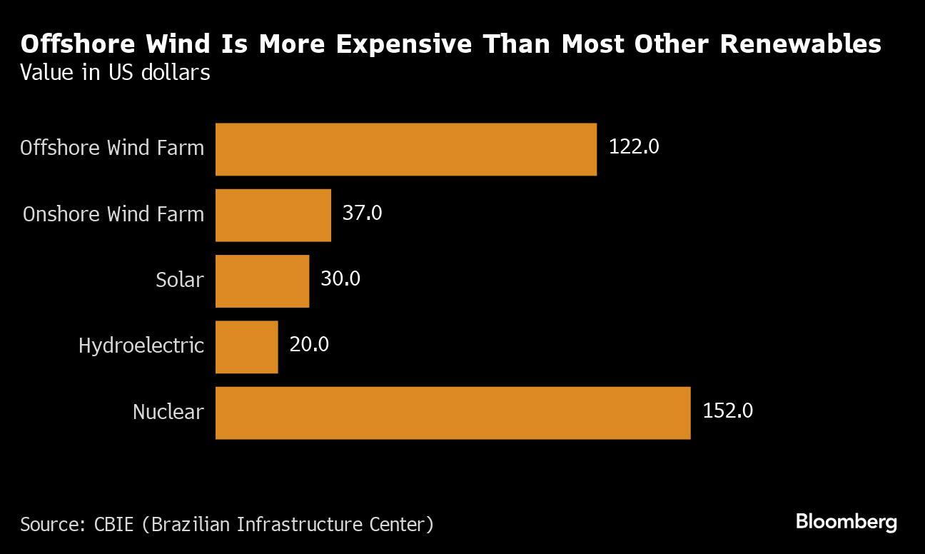 The government isn’t in a hurry to get the law passed because it wants lawmakers to reach an agreement on the polemic measures, according to people with knowledge of the discussions. The bill needs to become law before Brazil can start holding licensing rounds for large-scale wind projects. Developers are hoping to get the first offshore wind farms running by around 2030.