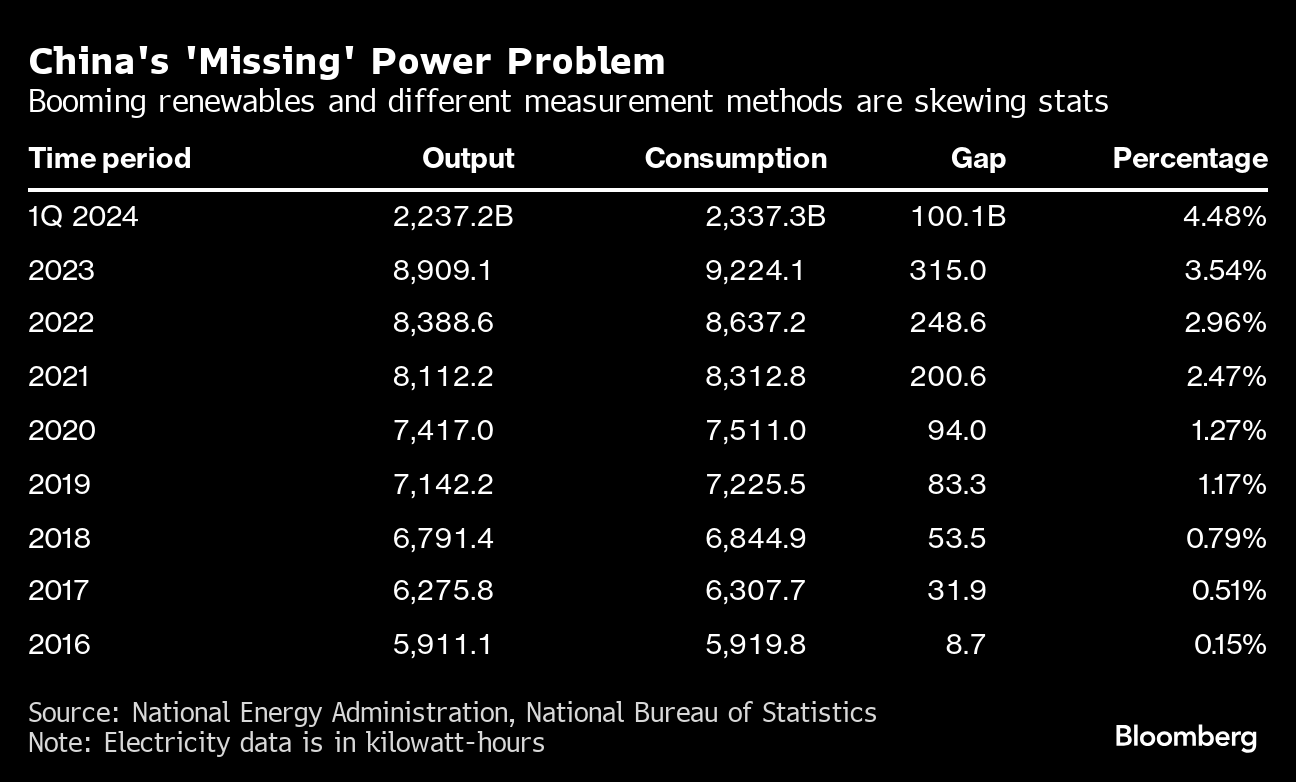 And so the gap widens. In 2023, it amounted to 3.5% of total generation, up from less than 1% in 2018. Although electricity production accounts for a relatively small portion of the economy, the discrepancy is only likely to get bigger as China installs more clean energy. That could lead to underestimations in how much the economy is growing.