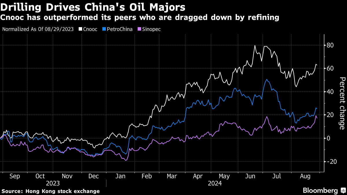 Cnooc, the last of the three to report first-half earnings and the company most dependent on drilling, said on Wednesday that net income rose 25% to almost 80 billion yuan ($11 billion). It followed record profits at PetroChina of nearly 90 billion yuan, a 4% rise from last year. Sinopec eked out a more modest increase of less than 2%.